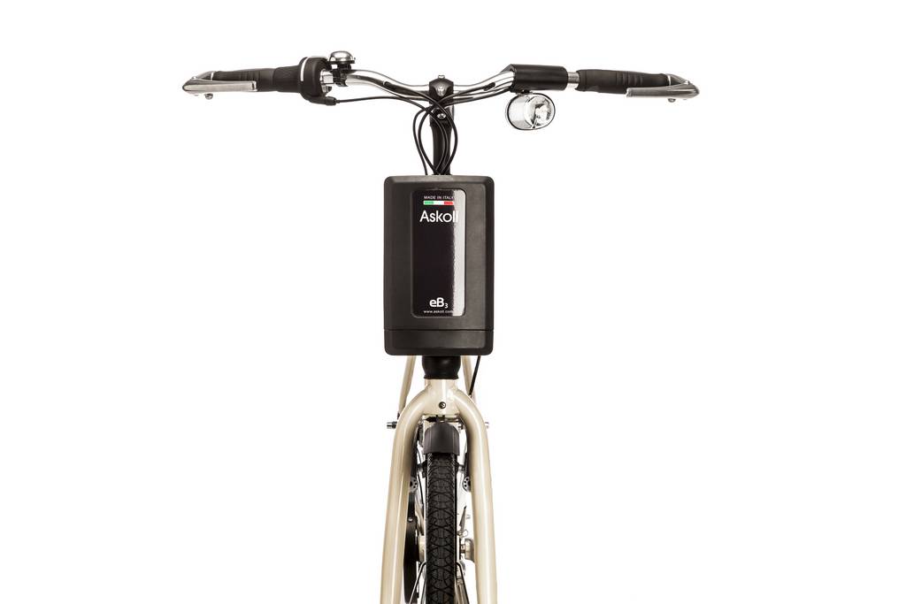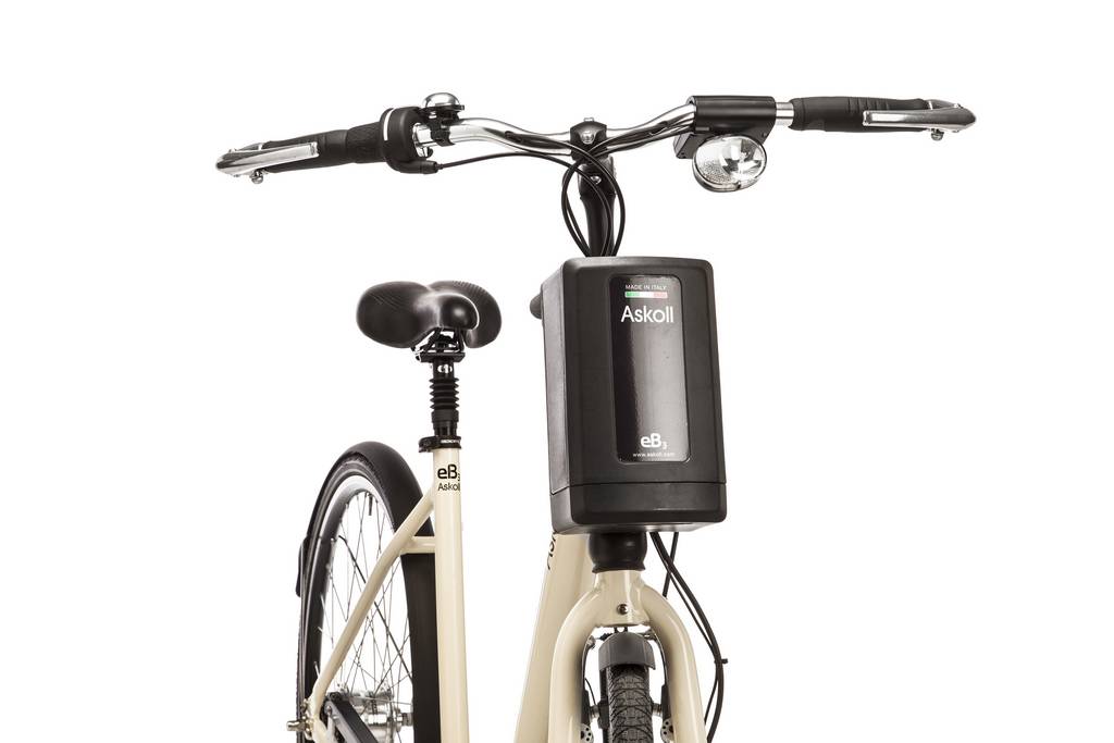 La nuova eB3 ha forcella e sella ammortizzate e manubrio regolabile: tutto questo si traduce in un’ottima resa anche sui terreni sconnessi, rispondendo sia alle esigenze di comfort dei ciclisti urbani più esigenti che degli appassionati di cicloturismo. Il telaio in alluminio, disponibile nelle versioni M con ruote da 26’’ e L con ruote dal 28’’, è studiato ergonomicamente per garantire la corretta postura. I freni retroversi nascondono l’impianto frenante, per una totale pulizia delle linee. L’ eB3 è dotata di luci a LED, computer digitale di bordo, quattro diversi livelli di assistenza alla pedalata, più una modalità di accompagnamento e partenza in salita, e cambio a 5 rapporti con selettore integrato nella manopola. La batteria agli ioni di litio, montata frontalmente, pesa 2,6 kg ed è estraibile con un semplice gesto. Si ricarica da 0 a 100% in cinque ore da una qualsiasi presa elettrica al costo di 5 centesimi. Ogni dettaglio è stato progettato intorno al motore elettrico brushless da 250W e coppia da 50Nm; montato sul mozzo anteriore è alimentato da una batteria agli ioni di litio con componenti Panasonic da 300 Wh, capace di garantire fino a 80 km di autonomia con un solo ciclo di ricarica, alla velocità di 25 km/h. Semplice e intuitivo il computer digitale di bordo è dotato di ampio display e di una grafica esaustiva. Permette di gestire i diversi programmi di assistenza e di monitorare costantemente lo stato di carica della batteria, la velocità, il livello di assistenza e la percorrenza residua. Askoll eB3 è disponibile in 2 varianti colore – grigio titanio e sabbia – ed è personalizzabile grazie a una vasta gamma di accessori.