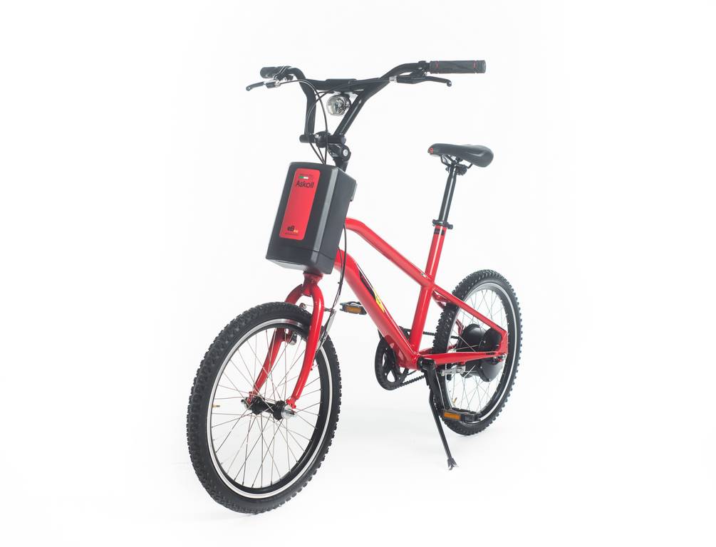 EbKid monta ruote da 20’’, ha una velocità massima assistita dal motore di 25Km/h e un’autonomia di 60 Km. La batteria monta celle Panasonic agli ioni di litio e si ricarica da 0 a 100% in cinque ore da una qualsiasi presa elettrica, al costo irrisorio di 0,05€. È intuitiva e facile da utilizzare grazie al computer di bordo, alle sue quattro differenti modalità di assistenza + la modalità accompagnamento e partenza in salita che permettono di affrontare anche i percorsi più lunghi e impegnativi. Grazie a differenti set di stickers, ogni bambino potrà divertirsi a rendere unica e coloratissima la propria bicicletta Askoll.