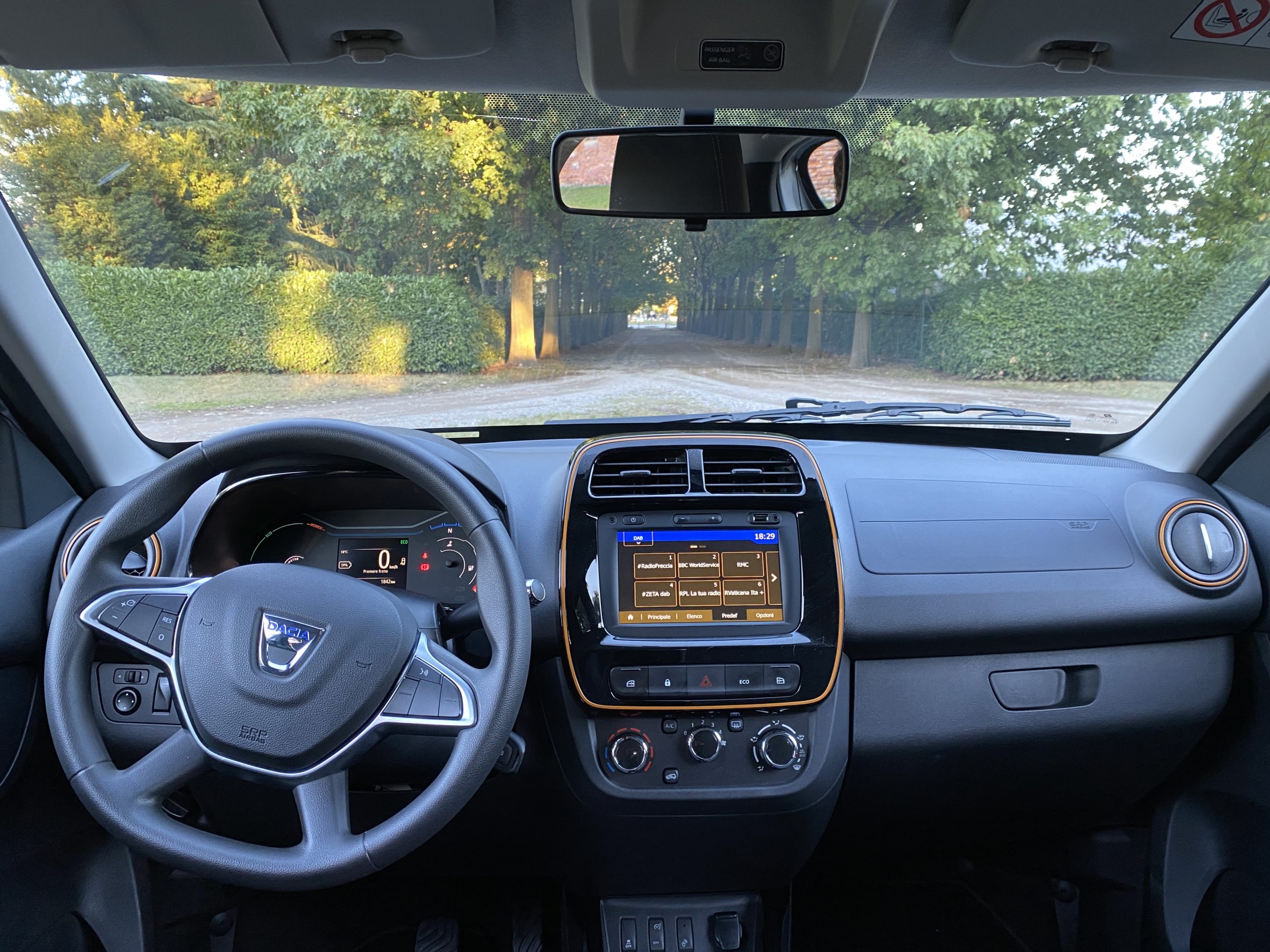 La Dacia Spring nasce sullo stesso telaio della Renault Kwid, una vettura a benzina economica disponibile per il mercato indiano. Dati questi presupposti non ci si può certo attendere una vettura con finiture di lusso. Nonostante ciò la Dacia Spring presenta comunque degli interni funzionali e discretamente accoglienti. Omologata per quattro persone, la posizione di guida è confortevole, con dei sedili piuttosto morbidi. Il guidatore ha tutto a portata di mano e il sistema multimediale, pur essendo un po’ spartano, assolve ai suoi doveri. Bisogna prendere un minimo di pratica con il singolare metodo di accensione, che richiede di ruotare la chiave, esattamente come solitamente si fa con una termica. Le plastiche sono tutte rigide e al tatto e non conferiscono una sensazione di qualità. L’assemblaggio è invece sufficiente per un’auto di questa categoria. L’abitacolo ha una natura molto pratica, anche grazie ai numerosi portaoggetti, che, complessivamente, arrivano a 23,1 litri di capacità totale. Il bagagliaio ha una capienza di 270 litri, un buon valore per una city car. Non manca la possibilità di connettere la vettura con l’applicazione per smartphone. Quest’ultima, denominata MyDacia, consente di controllare l’autonomia e di localizzare la vettura, oltre a dare la possibilità di accendere o spegnere il “clima”.
