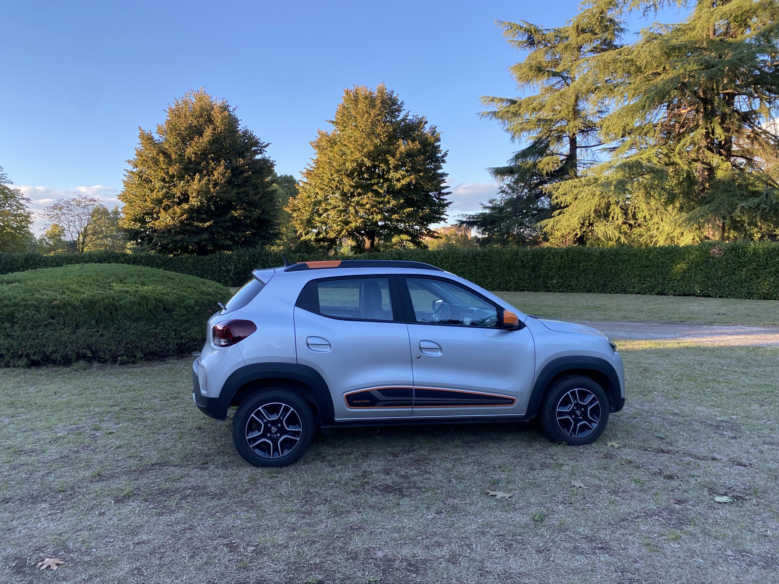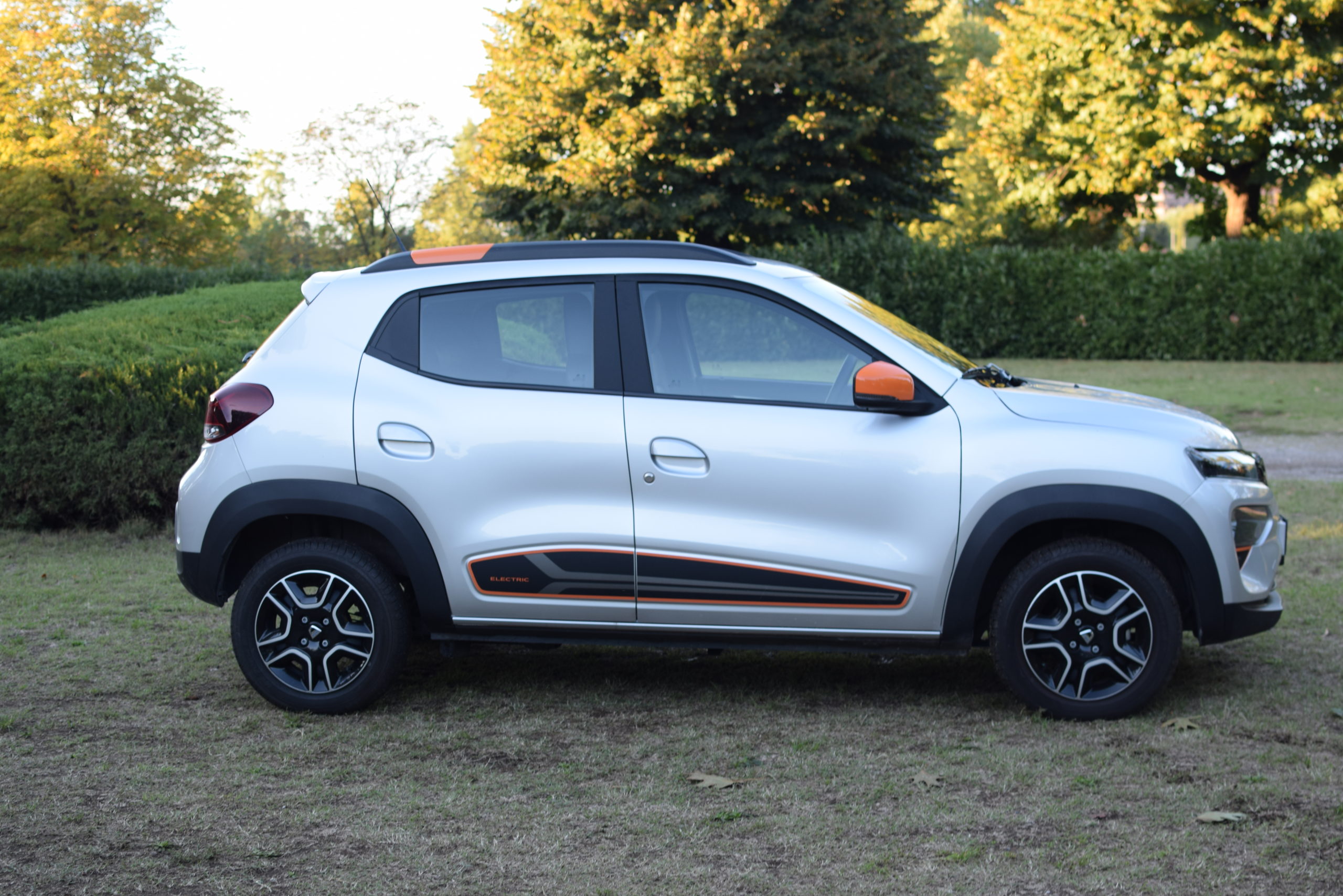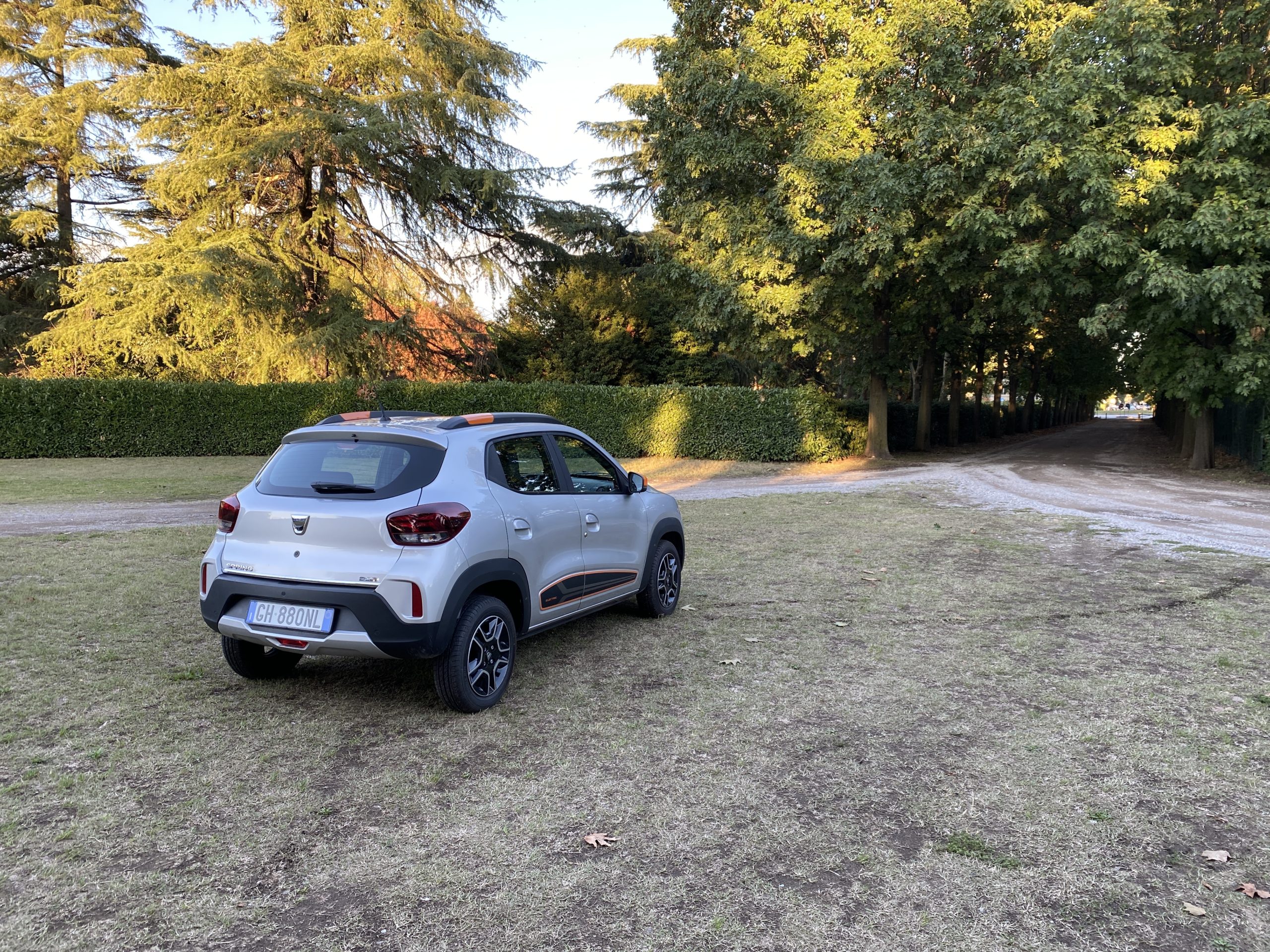 La Dacia Spring è un’elettrica con delle linee che ispirano simpatia. Lunga 373 cm, si presenta come una crossover ultra compatta, per via dell’altezza da terra superiore e per alcune protezioni presenti su paraurti e fascione. Conferiscono un carattere sbarazzino anche i mancorrenti sul tetto e le protezioni in plastica. Sull’esemplare che abbiamo provato erano presenti anche dei “tocchi” arancioni visibili sulle calotte degli specchietti e sulle protezioni sottoporta. Complici le dimensioni ridotte, ha dimostrato di divincolarsi molto bene tra le mura cittadine, anche in virtù della sua natura elettrica, che assicura un bello sprint ai semafori.