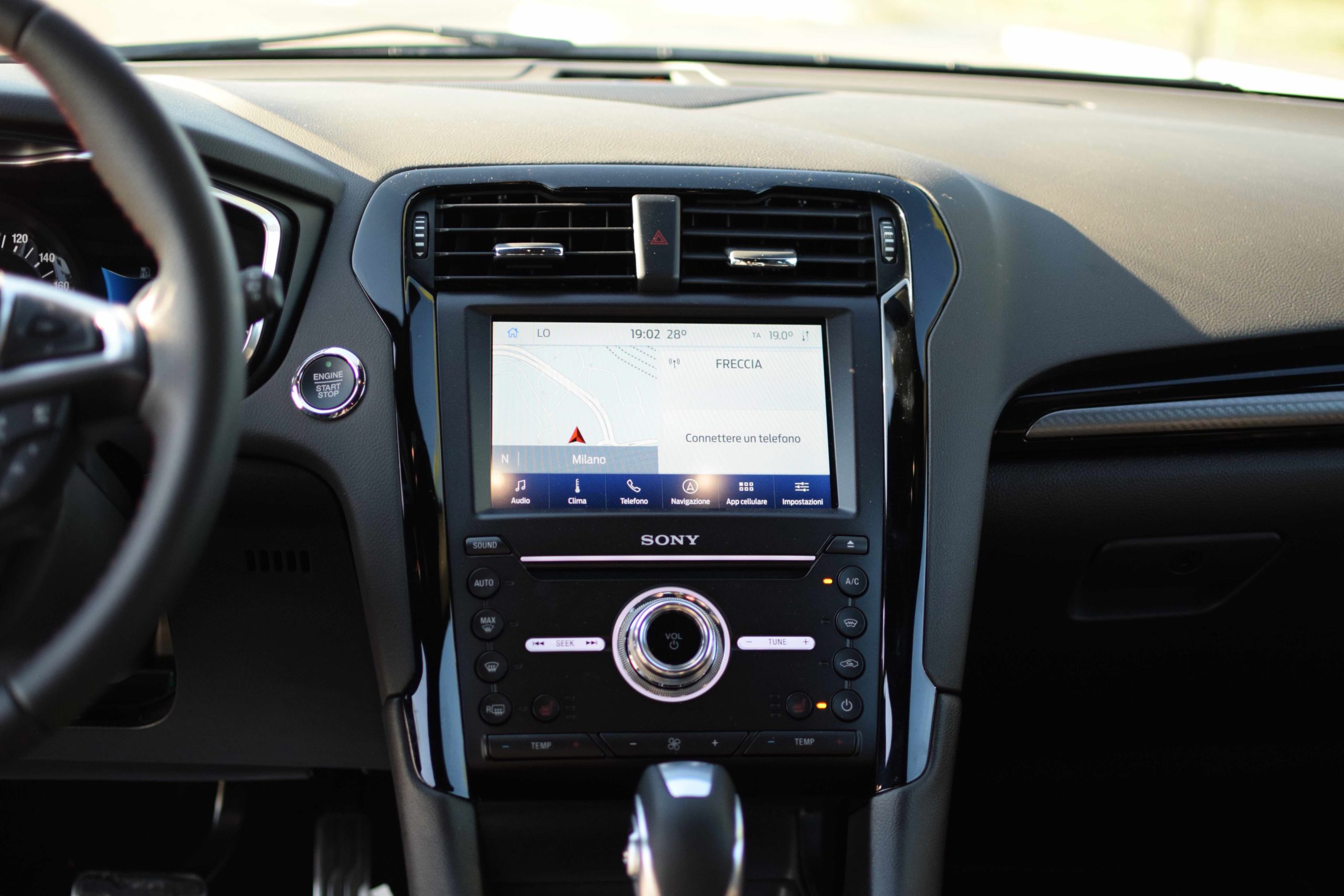 Centralmente troviamo l’impianto di infotelematica Sync 3 compatibile con Apple Car Play e Android Auto e che può contare su uno schermo da 8 pollici e ben 12 speaker. L’hardware è della Sony e è presente persino un lettore CD, oltre alla radio DAB.
