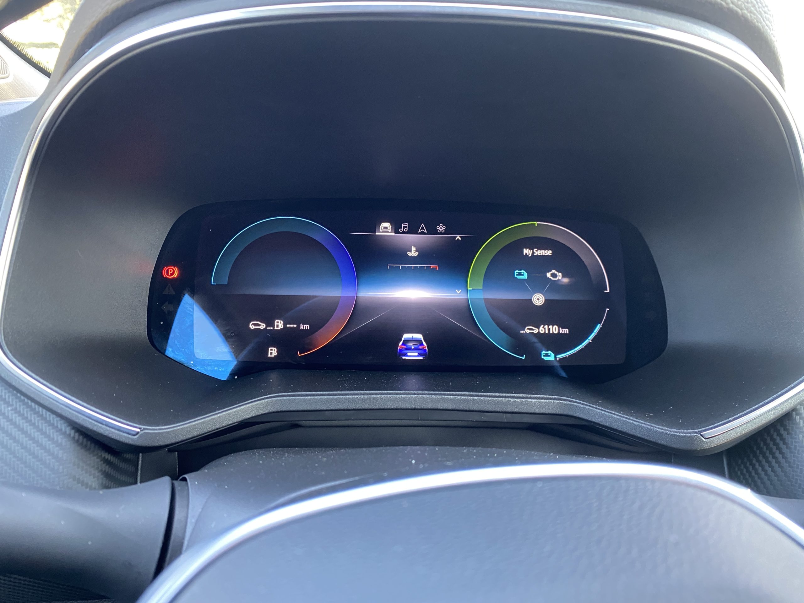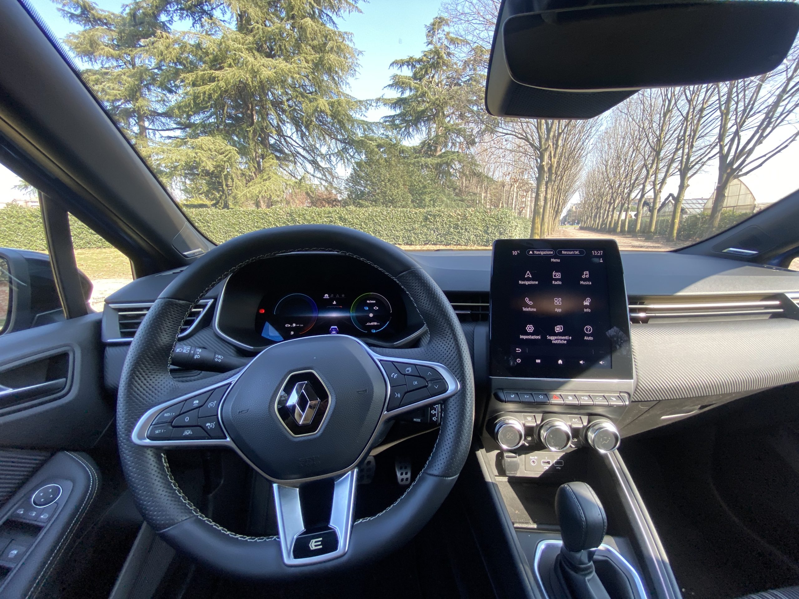 L’abitacolo della Renault Clio E-Tech Hybrid è piuttosto curato e vede la presenza di un cruscotto digitale, che viene proiettato sopra un pannello da 7″, e di uno schermo verticale da 7″ di tipo touch che assolve alla funzione di sistema multimediale. Sulla strumentazione digitale, oltre alle informazioni principali relative alla velocità e ai consumi, vengono visualizzati i flussi di energia del powertrain ibrido, con la quantità di potenza richiesta per l’accelerazione e le fasi rigenerative, oltre all’indicazione della ricarica della batteria. I sedili garantiscono un buon contenimento risultando molto comodi e lo spazio all’interno non manca; si riesce a viaggiare comodi in quattro persone, mentre in cinque si fa un po’ più di fatica (chi siede in mezzo è un po’ sacrificato).