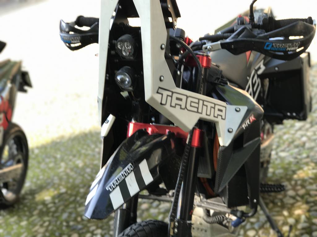La storia di Tacita inizia nel 2009, anno in cui sono stati effettuati i primi test; l’azienda è stata invece istituita nel 2011. Lo scopo di Tacita è quella di avere una moto da enduro “vera” con un telaio e con prestazioni all’altezza avendo però cura del territorio e dell’ambiente circostante. La Tacita T-Race da enduro è stata la prima moto elettrica a partecipare al Merzouga Rally in Marocco, nel 2012.
